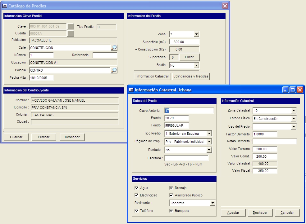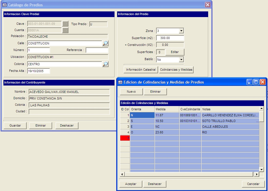 - Catálogo de Predios dependiente de catálogo de contribuyentes.
